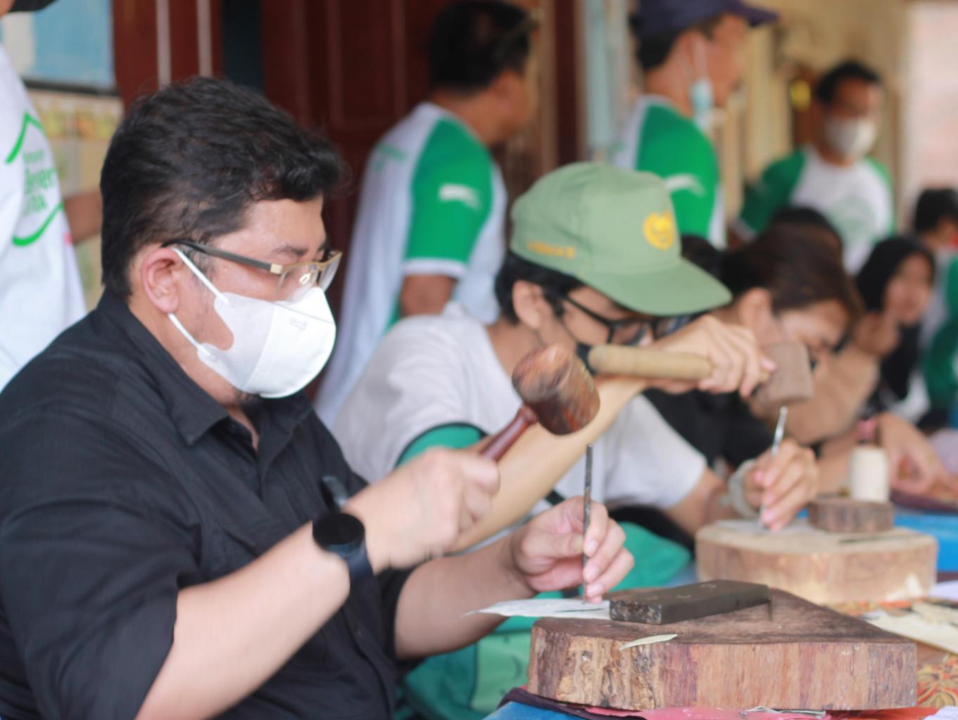 Menatah wayang ini dilakukan setelah proses pengerokan dan pembuatan pola pada kulit. Dalam proses ini ada beberapa alat yang digunakan, seperti pahat, alas berupa kayu berbentuk lingkaran (pandukan), dan pukul dari kayu. Proses menatah wayang ini dilakukan agar saat pewarnaan mudah dilakukan.