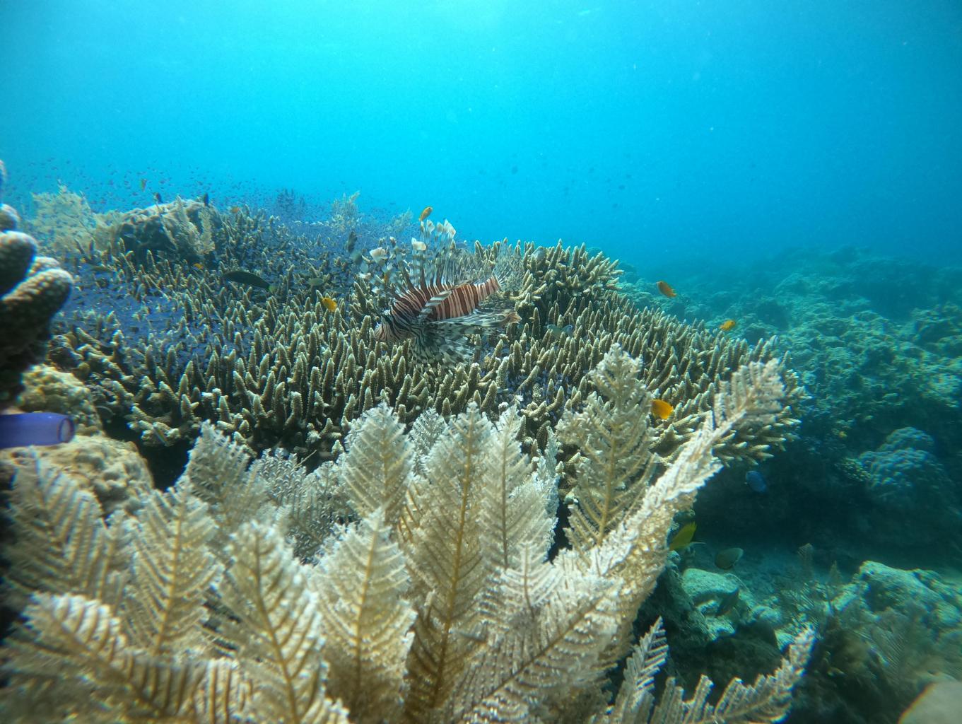 - Kondisi terumbu : 30 – 78 % dengan kategori sedang sampai sangat baik dengan dominasi ikan hias yang cantik.