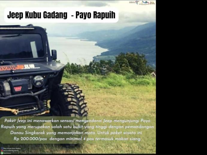 berikut adalah Paket Wisata yang disediakan oleh Desa Wisata Kubu Gadang: